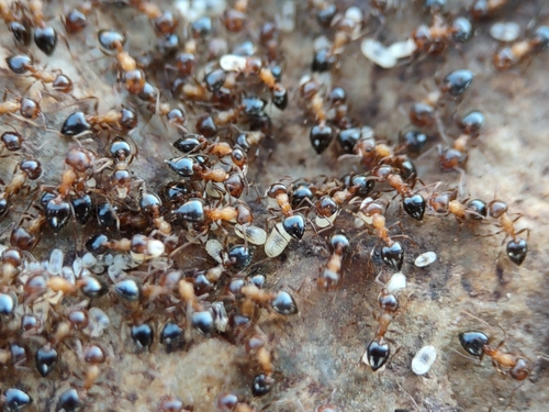 Estas hormigas anidan en cactus cholla, especialmente Opuntia fulgida. También se encuentran nidos en el suelo o bajo piedras o en madera podrida, incluso bajo la corteza de un árbol muerto en pie y en ramas de robles (Quercus sp.). Las crías se encuentran de marzo a octubre, los sexos en los nidos de julio a septiembre. Los grillos Myrmecophila sp. aparecen en los nidos. (Mackay y Mackay 2002)