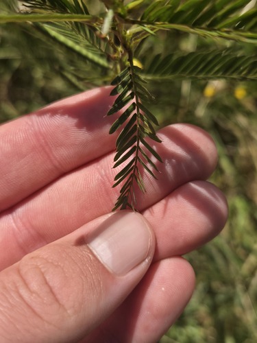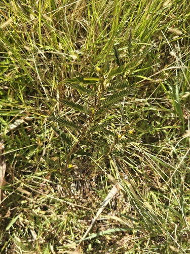 Chamaecrista nictitans es una fabácea herbácea anual distribuida en América. Presenta tallos erectos o ramificados y hojas compuestas con numerosos folíolos pequeños que reaccionan al tacto mediante movimiento rápido.